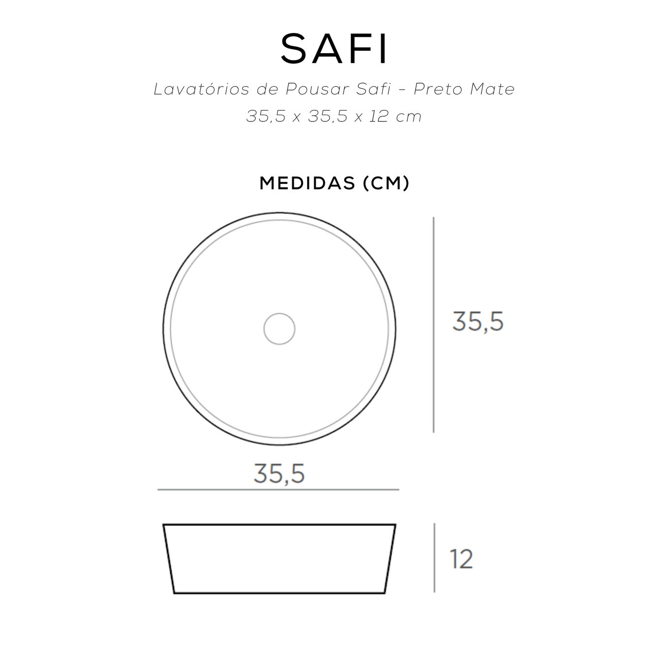 Dimensões: 35,5 x 35,5 x 12 cm